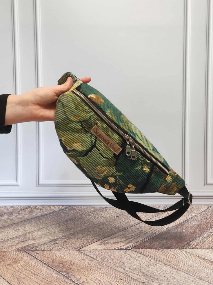 Plongez dans l'univers de la mode éthique avec cette banane en canevas upcyclé, un mélange parfait d'originalité et de durabilité. Chaque banane est fabriquée à partir de canevas vintage soigneusement sélectionnés et recyclés, offrant ainsi une seconde vie à des matériaux autrefois oubliés.
