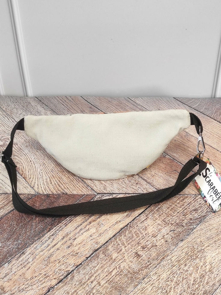 Comme toutes les créations du Scarabée Vert, cette bananette est conçue à partir de canevas recyclés et doublée en coton bio. Un accessoire qui raconte une histoire et respecte la planète.