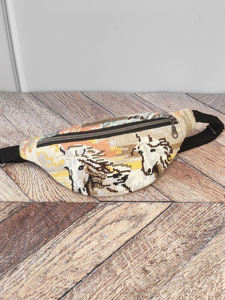 Petite, légère et pleine de style, la Bananette en canevas upcyclé est idéale pour les enfants ou les minimalistes en quête d’un accessoire pratique, éthique et unique. Chaque bananette est fabriquée à la main à partir de canevas chinés, pour un look à la fois vintage et engagé.